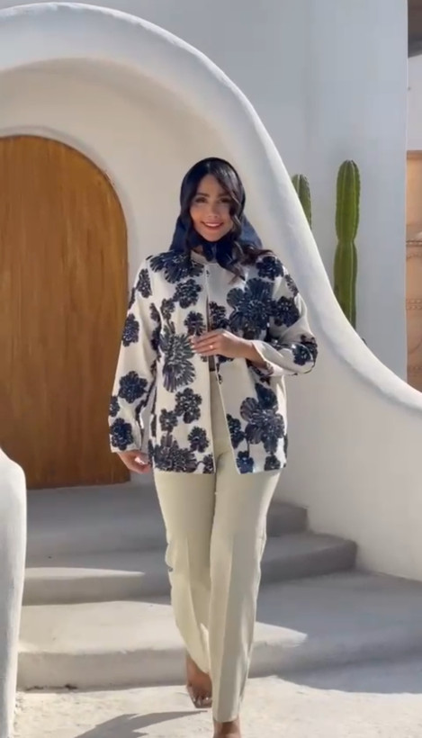 کت تک زنانه لنین تور دورزی مجلسی یقه گرد طرح دار